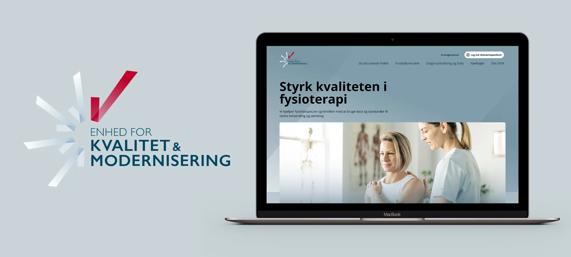 Vi har udviklet en samlet digital løsning i tæt samarbejde med EKM. Et intranet, hvor kvalitetsnetværkene mødes, deler dokumenter, planlægger møder og kommunikerer effektivt og en offentlig hjemmeside, hvor alle fysioterapeuter kan hente vejledning og den nyeste viden.
